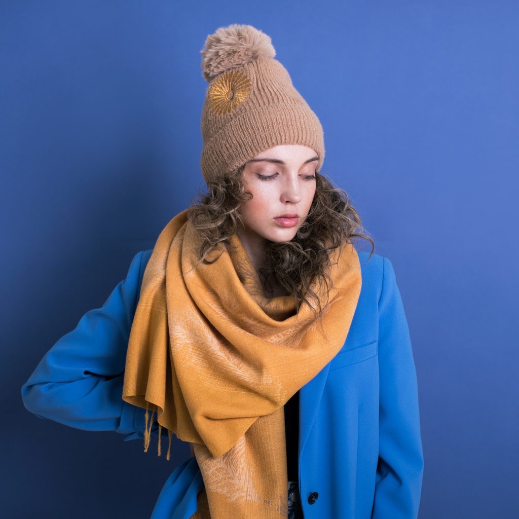 Zimní čepice s bambulí. Provedená z měkkého a příjemného materiálu. Bambule provedená z umělé kožešiny. Spodní část na zahnutí. Velmi teplá. Výrobek zateplený flaušem.