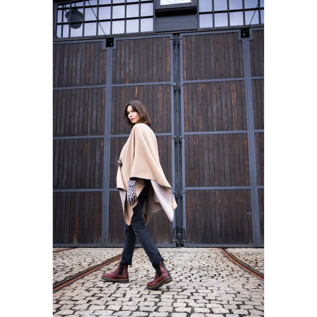 Teplé pončo na podzimní a zimní dny. Provedené z měkkého a příjemného na dotek materiálu. Teplé a pohodlné při nošení, hezky sedí na těle. Každé zimní stylizaci dodá charakter a kouzlo.