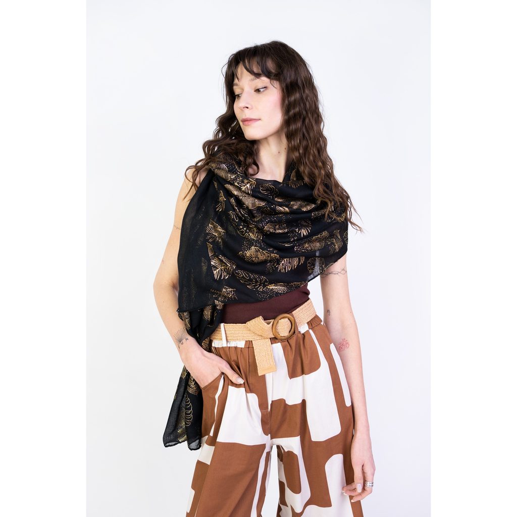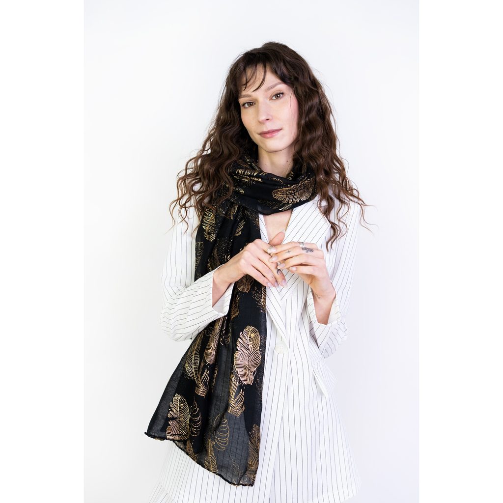 Černý šal s listy
