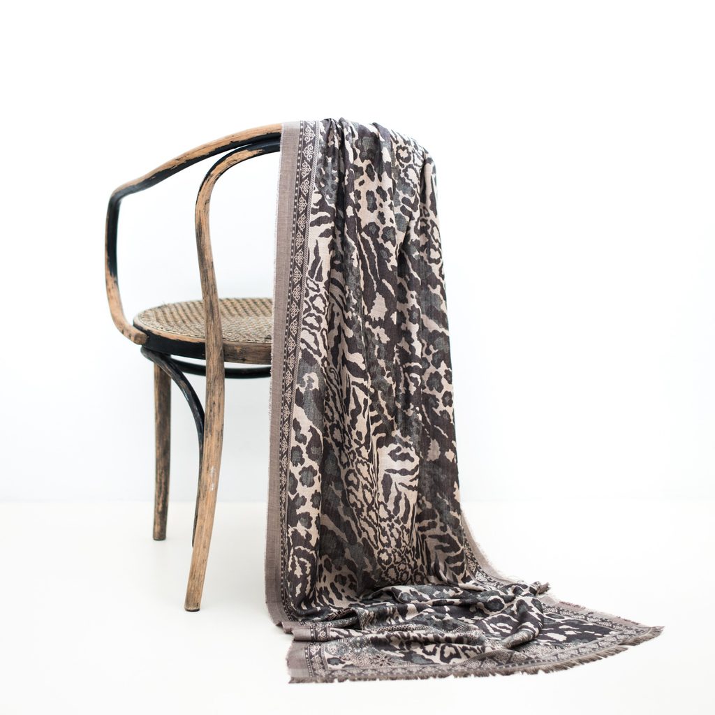 Stylová šála zdobená zvířecím motivem. Provedená z měkkého a příjemného materiálu. Ideální zároveň pro každodenní i elegantnější stylizace. Klasická a nadčasová. Šála se krásně formuje a prezentuje se velmi působivě.