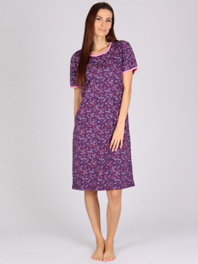 Dámská noční košile s drobným potiskem lístků je přesně to pravé pro Váš příjemný spánek. Noční košile je ze 100% bavlny, která Vám zajistí komfot při nošení a spánku.