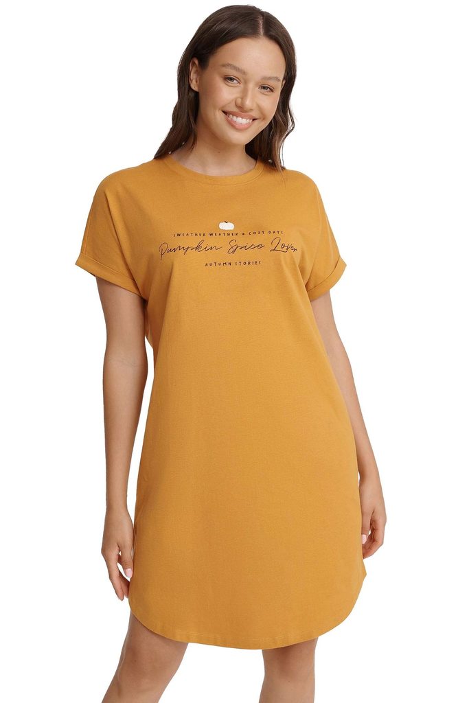 Dámská noční košile 40934 Grind Henderson - vyrobené z velmi kvalitní a příjemné bavlny - jantarová barva - krátké rukávy - na přední straně potisk