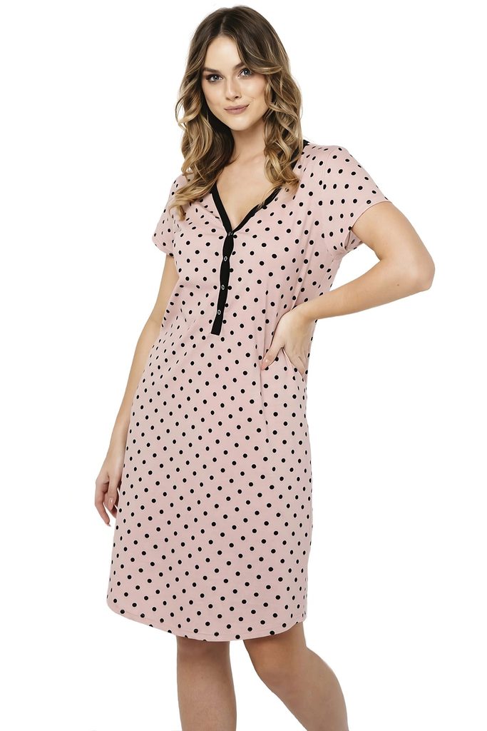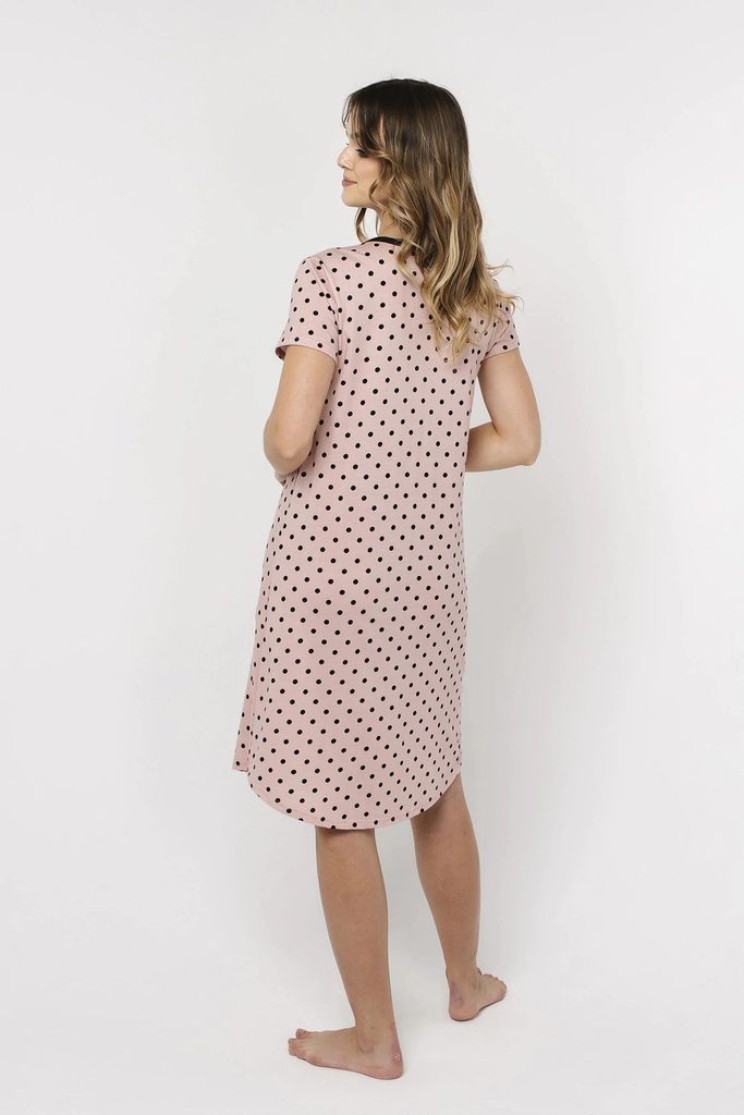Noční košile Buscato ITALIAN FASHION - růžová barva - vyrobená z velmi kvalitní a příjemné bavlny - krátký rukáv - zapínání na patentky - s černými puntíky