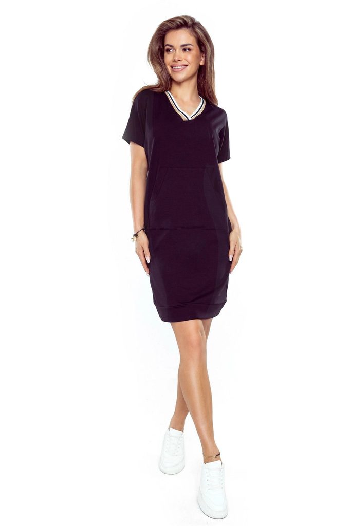 Noční košile Fleur black ELDAR - černá barva - z vysoce kvalitní bavlny - výstřih s barevným stahujícím lemem - krátké rukávy - kapsy na bocích