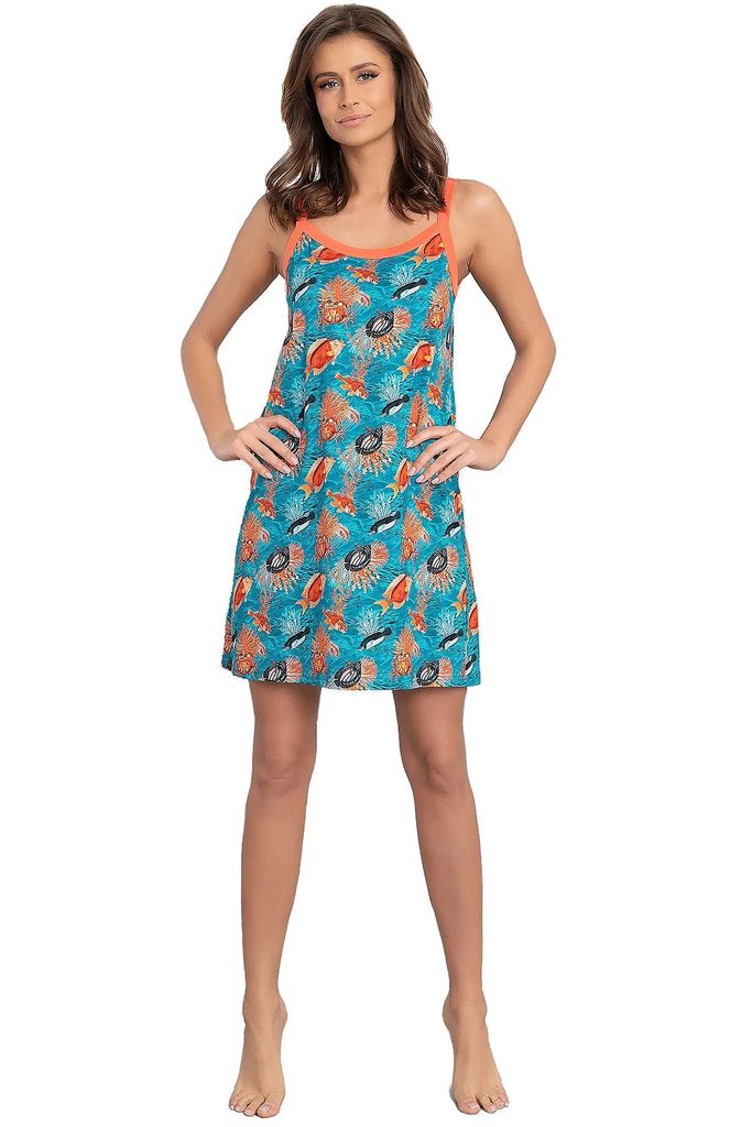Noční košile Oceania ITALIAN FASHION - vyrobená z velmi kvalitní a příjemné bavlny - s tenkými a neodepínatelnými ramínky - s barevným potiskem - kontrastní lemování