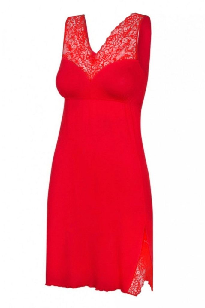 Dámská noční košilka Sandra red FUNNY DAY - červená barva - z vysoce jakostní viskózy - výstřih zdobený krajkou s květinovým motivem - široká ramínka
