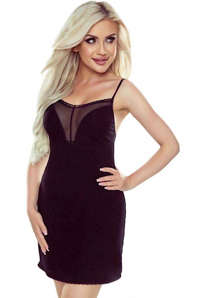 Noční košile Maya EWANA - černá barva - z velmi kvalitní viskózy - tenká ramínka - výstřih z průhledného tylu