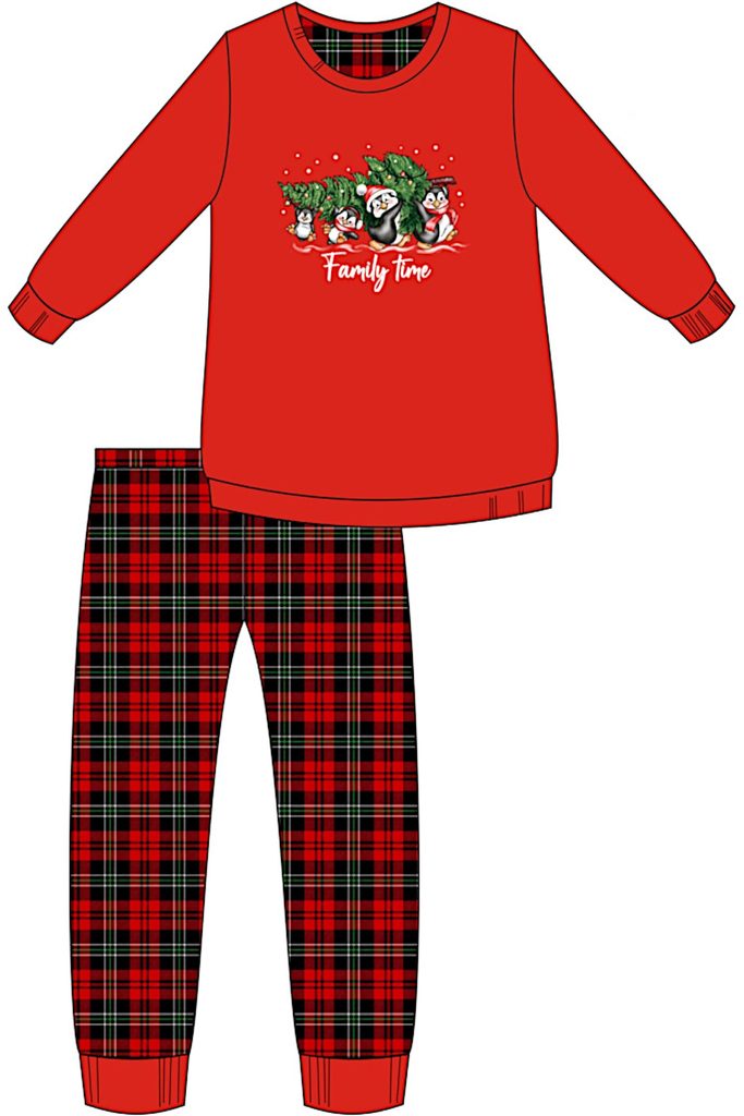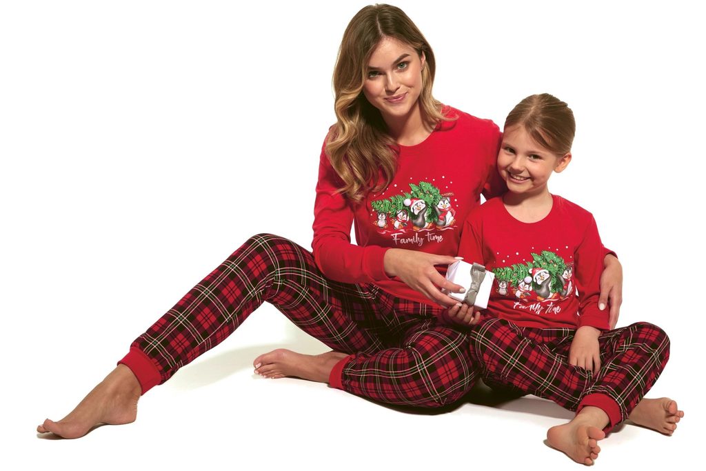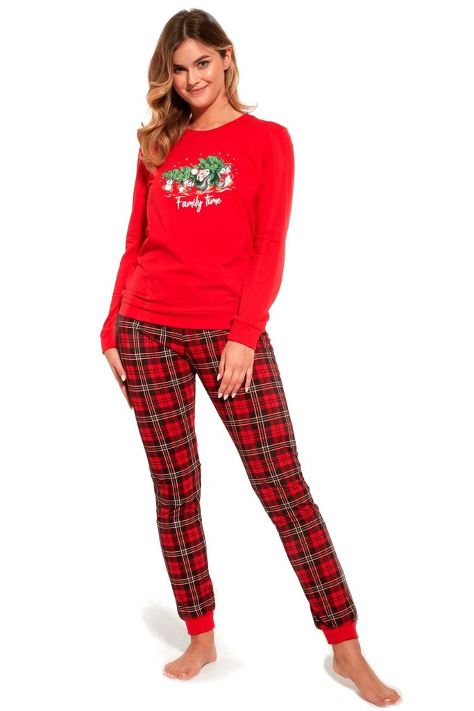 Dámské pyžamo 671/306 Time Cornette - z vysoce jakostní bavlny - červené tričko s dlouhými rukávy - na přední straně barevný potisk - dlouhé vzorované kalhoty - pyžamo je vhodné i na denní nošení