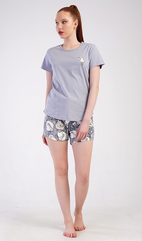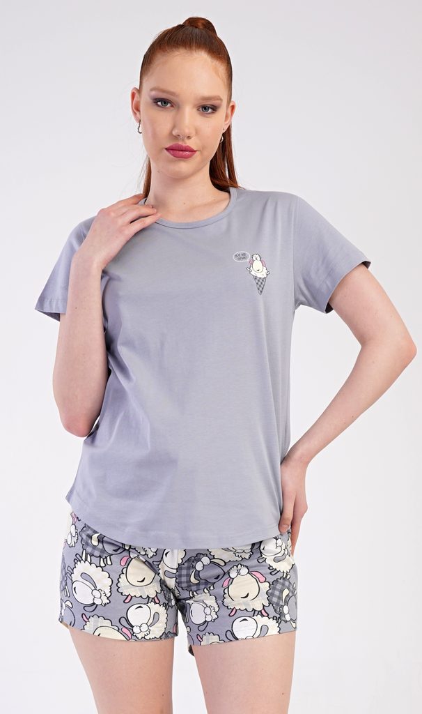 Dámské pyžamo šortky Ovečky - šedá