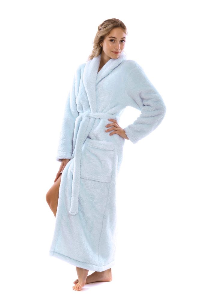 Sametově hebký župan z kolekce LILLY extra v luxusním světle modrém barevném provedení, ve které se budete cítit královsky. Župan má klasický střih v elegantní délce se šálovým límcem a zavazováním v pase, praktické jsou také dvě velké kapsy. Župan je vyroben z wellsoft materiálu, zaručujícím maximální komfort.