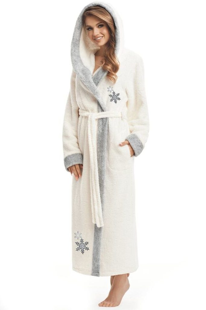 Dlouhý dámský župan Snowflake s výšivkou vločky