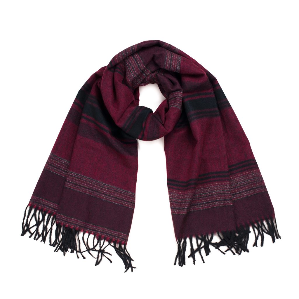 Hodí se k mnoha různým stylizacím - zároveň elegantním i městským. Provedená z nekousavého materiálu. Teplá zimní šála zakončená třásněmi.