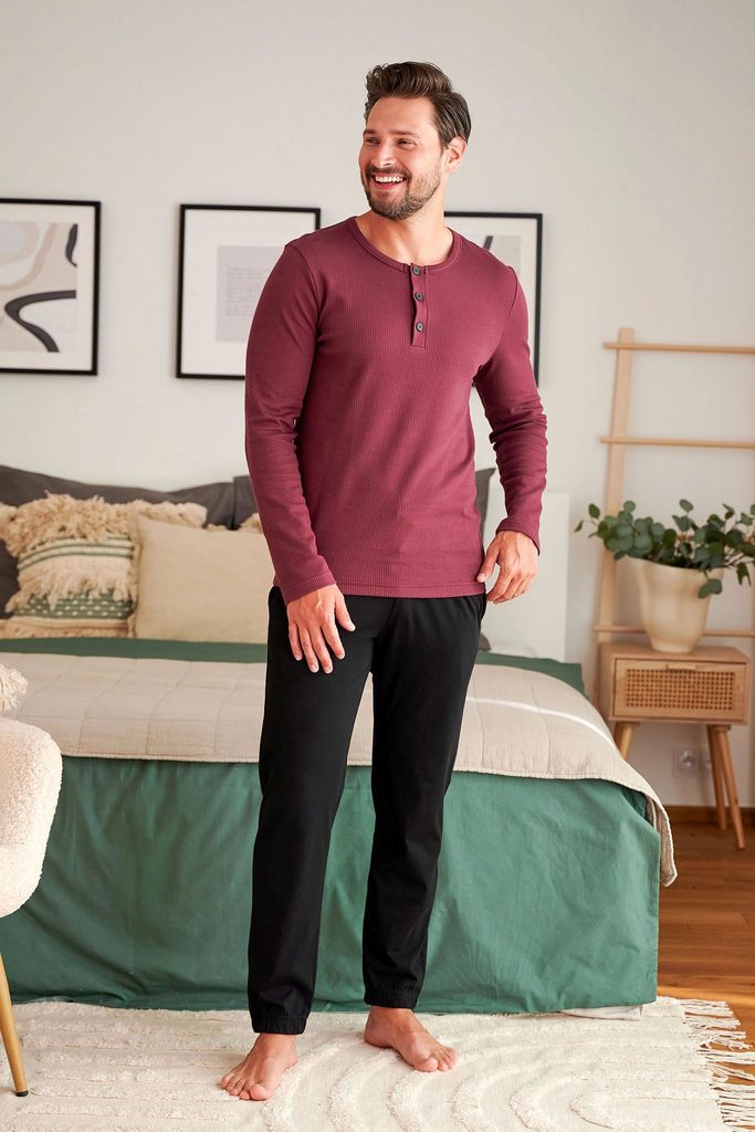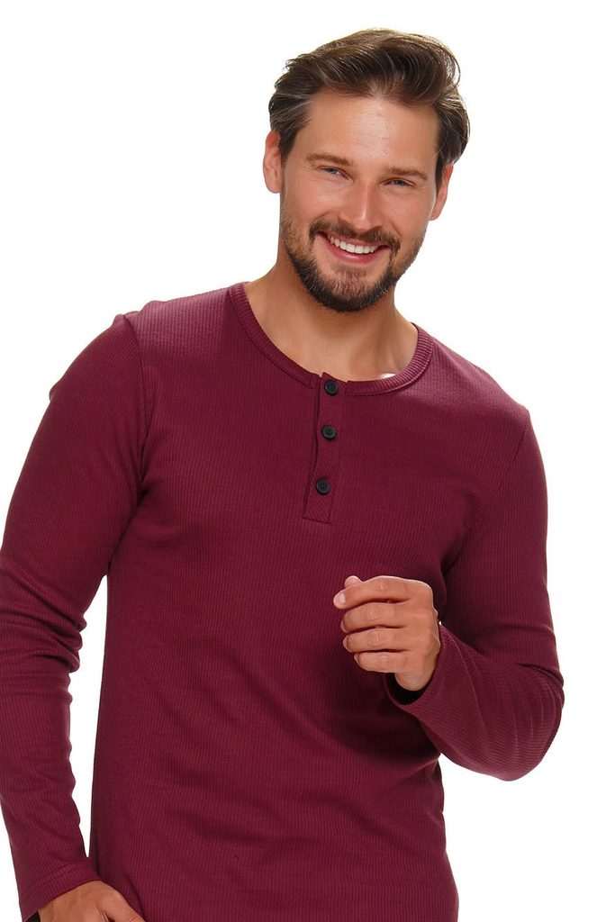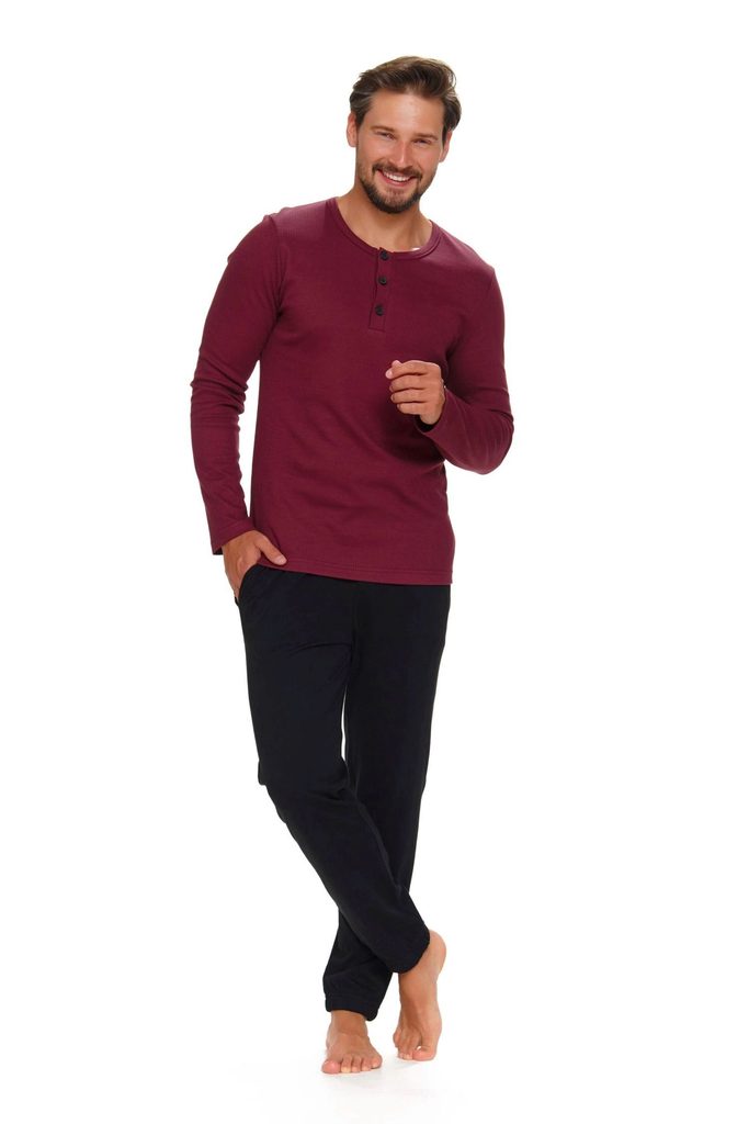 Pánské pyžamo 5238 plus Doctornap - vyrobené z velmi kvalitní a příjemné proužkované bavlny - vínové tričko s dlouhými rukávy - zapínání na knoflíky - dlouhé tmavé kalhoty s kapsami - certifikát OEKO-TEX Standard 100