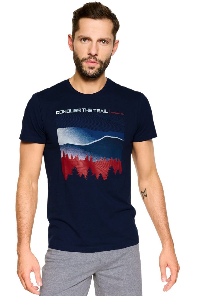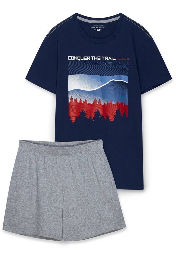 Pánské pyžamo 39907 Nature Henderson - vyrobené z velmi kvalitní a příjemné bavlny - tmavě modré tričko s krátkými rukávy - na přední straně potisk - šedé kraťasy